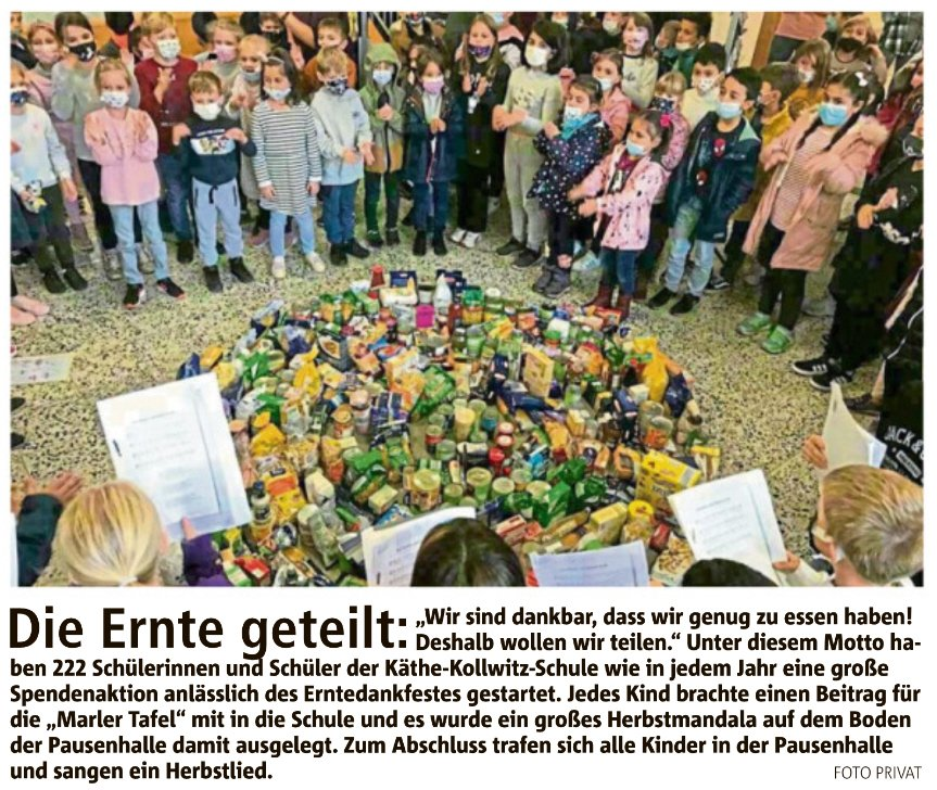 Auch Brigitte Hobirk, eine von 100 ehrenamtlich aktiven Tafel-Unterstützern in Marl, findet es vorbildlich, dass schon kleine Kinder mit der Aktion spielerisch das Teilen lernen konnten: „Man muss selbst spüren, dass einem das Teilen ein gutes Gefühl gibt. Und dass diese Freude mehr wiegt als das Abgeben einer begehrten Süßigkeit oder des Lieblingsmüsli.“