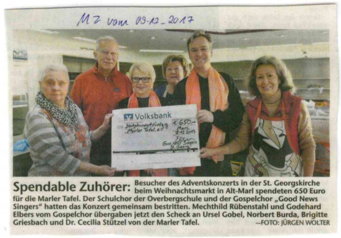 Die Marler Tafel wurde auch mit 4.000 Euro bedacht. Vielen Dank dafür.....