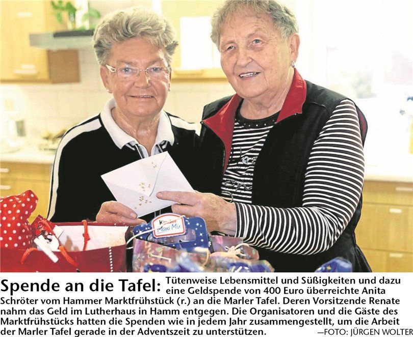In diesem Jahr werden drei Organisationen in Marl unterstützt. Dabei handelt es sich um das Blaue Kreuz, das Therapiezentrum Hof Feuler und die Marler Tafel. „Wir waren ganz überrascht und fühlen uns geehrt, dass wir bedacht wurden“, sagt die Tafel-Vorsitzende Edeltraut Hartelt.